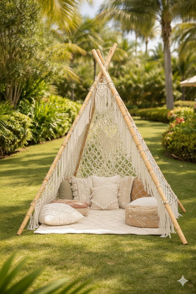 Large Luxury Bamboo Macrame Teepee